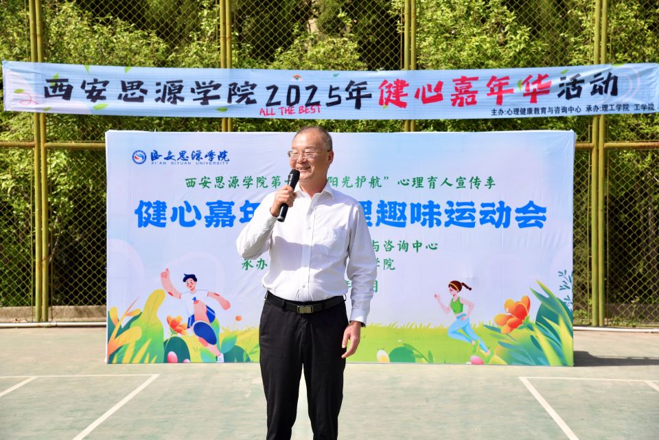 2025年4月23日下午,由心理健康教育与咨询中心主办,理工学院与工学院联合承办的西安思源学院第十届“阳光护航”心理育人宣传季——健心嘉年华心理趣味运动会,在鸿雁餐厅篮球场盛大启幕。本次活动以“五育融合,心育赋能”为核心理念,通过沉浸式趣味运动体验,打造“体育强体、心理润心、五育铸魂”的育人场景,助力师生在春日暖阳中释放压力、滋养心灵,推动心理健康教育与人才培养深度融合。