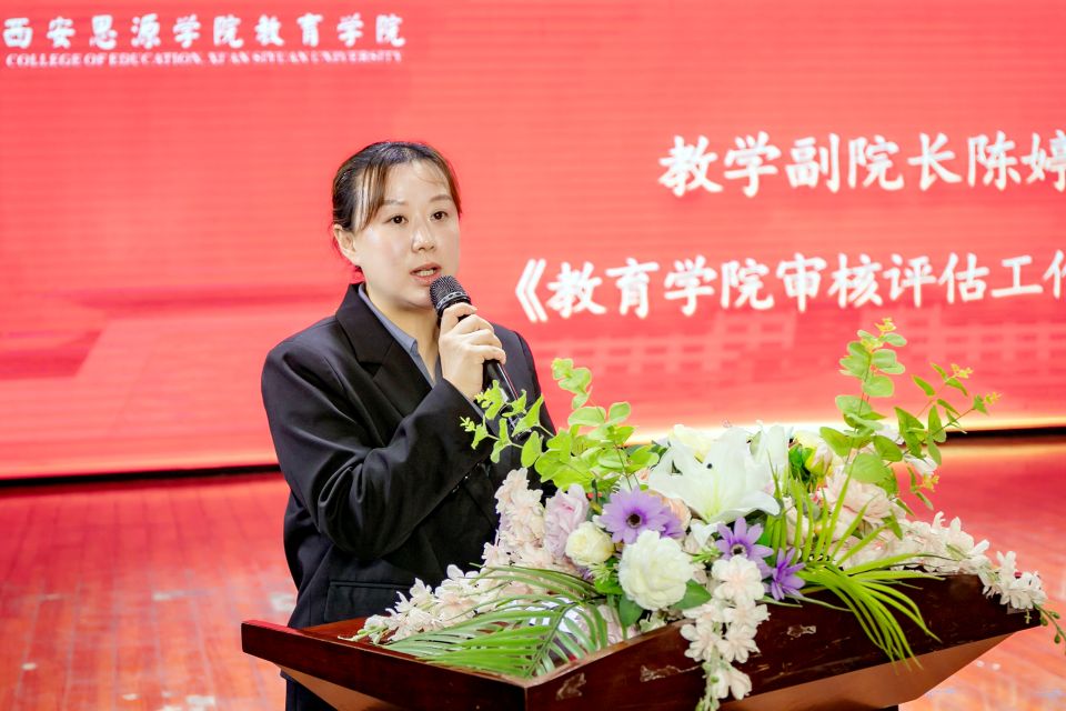会上,陈婷婷作《西安思源学院本科教育教学审核评估第一阶段工作教育学院工作总结汇报》,全面梳理第一阶段在资料调阅、课堂教学、访谈座谈、学生管理等核心任务中的实践成果,总结了“全员参与、全程协同、全情投入”的工作经验,为教育学院下一阶段工作明确了优化方向与实施路径。