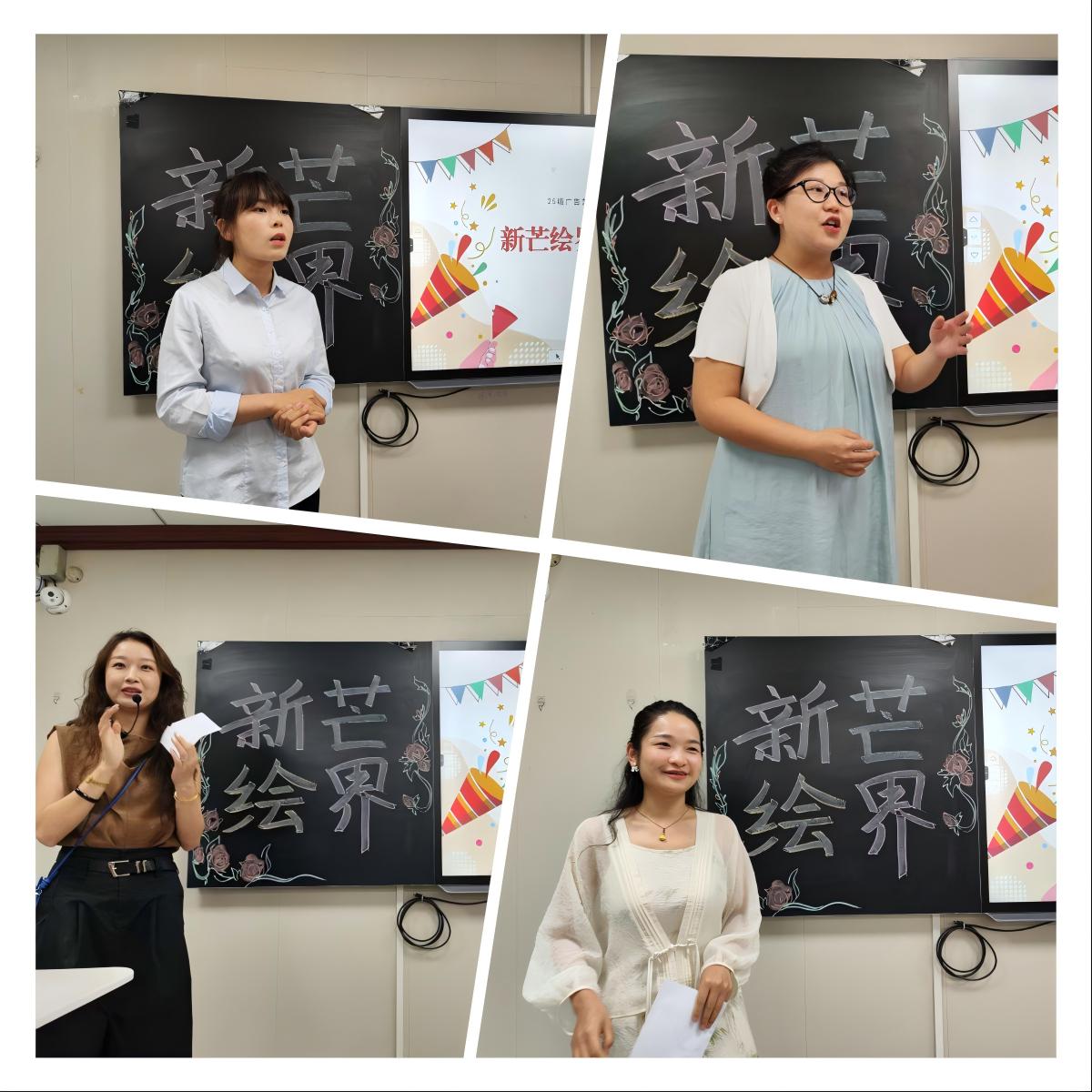 广告艺术设计专业举行“新芒绘界·广艺同行”主题新生见面会。专业负责人冯瑞芬副教授及全体专任教师参加。冯瑞芬副教授热情欢迎新生,并全面介绍了课程设置、培养目标、就业升学方向及学科竞赛实践。她寄语新生夯实基础、勇于创新,成长为前瞻视野与精湛技艺兼备的人才。姚蕾、王静、王晓、李泽乾等老师分别从基础技能、创意灵感、市场需求、实践项目等角度分享经验。互动提问环节气氛活跃融洽。