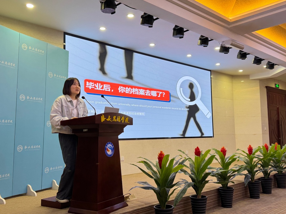 在人社政策宣讲环节,灞桥区人力资源服务中心业务骨干王丹围绕“毕业后档案去向”核心问题,就毕业生档案转递、托管等事宜进行了细致讲解,精准解答了学子们对档案管理的常见困惑,为毕业后档案处理提供清晰指引;灞桥区再就业服务中心业务骨干赵倩针对一次性创业补贴政策展开介绍,从申请条件、所需材料到办理流程,逐一进行拆解说明,让有创业想法的学子明确补贴申领路径;灞桥区再就业服务中心业务骨干李雨珊聚焦个人创业担保贷款政策,深入解读贷款额度、申请要求及贴息政策,为学子创业资金筹备提供有力政策参考。