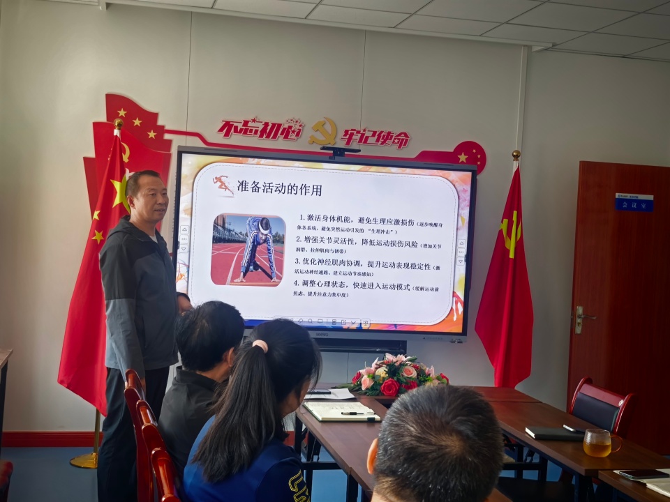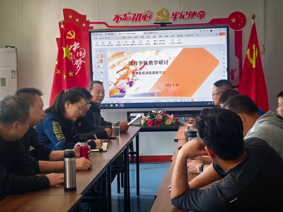 2025年9月24日14时,体育学院组织全体教师开展《大学体育Ⅰ(身体素质训练课)》教学专题教研活动。本次教研由教学副院长张辉主持,围绕课程关键教学环节的理论要点、组织实施方法及教学注意事项展开深入讲解,全体教师积极参与讨论,为优化课程教学、提升育人实效凝聚共识。