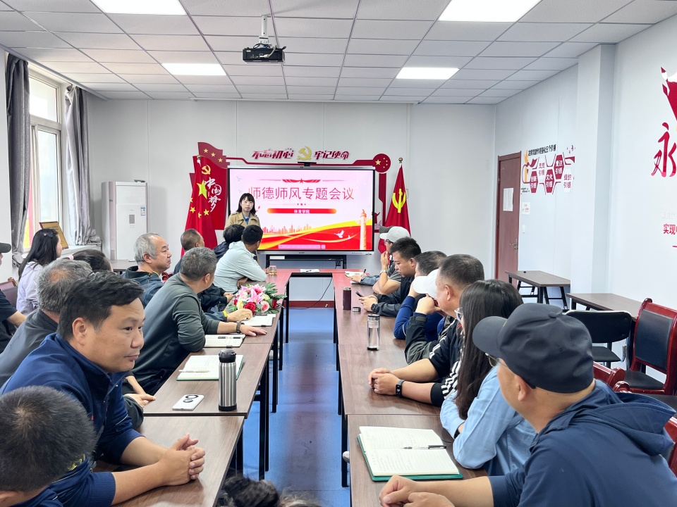 为强化体育教师育人责任,筑牢“立德树人”根本,将师德师风建设与体育专业特色深度融合,2025年9月30日,西安思源学院体育学院在会议室召开师德师风专题会议,全体教师参会,会议由体育学院党总支书记汤文哲主持。