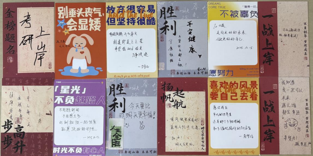 活动现场人气高涨,四大特色环节让同学们沉浸式释放情绪、汲取能量。在“绘制自己的情绪”环节,大家拿起画笔,将当下的心情转化为专属小表情,用充满创意的打卡章开启仪式感满满的解压之旅;“收下暖心鼓励”专区,志愿者们准备的鼓励卡成为“暖心良药”,“你已经超棒啦”“慢慢来,未来超可期”等话语,让陌生人之间的温柔悄然传递;“情绪树洞留言板”前格外热闹,同学们或写下未说出口的烦恼、藏在心底的期待,或为他人的留言点赞、写下鼓励,让文字成为情绪的出口、温暖的纽带;而“解锁惊喜奖品”环节则为活动增添了更多乐趣,同学们只要体验任意环节,就能将精美小礼物与好心情一同“带回家”。