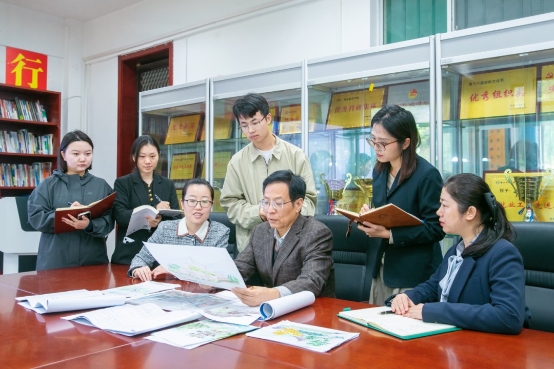 城市建设学院院长张炜教授(前排左二)指导学院科研团队开展《再生水园林景观用水数智化管理标准》研究