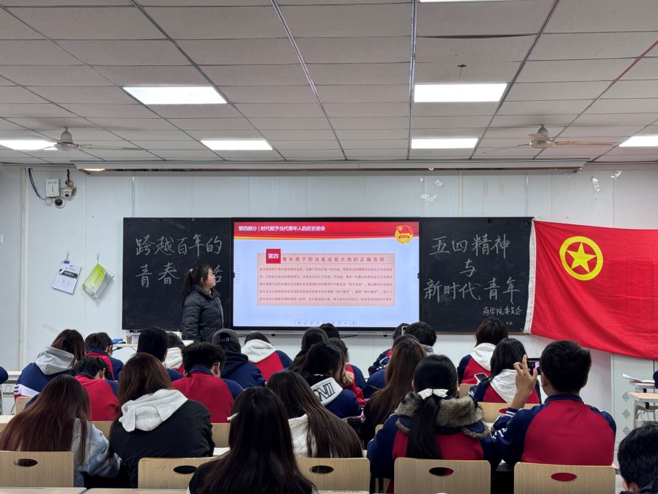 随后进行的“五四精神学习”部分,商学院团委组织部负责人杨银花带领大家回顾了波澜壮阔的五四运动历史,深入阐释了以“爱国、进步、民主、科学”为核心的五四精神的时代内涵。培训强调了五四精神在百年传承中对于激励一代代青年为民族复兴和国家富强而奋斗的巨大作用,并结合当前时代背景,探讨了新时代青年如何继承和发扬五四精神,将个人理想融入国家发展伟业,勇于创新创造,矢志艰苦奋斗。