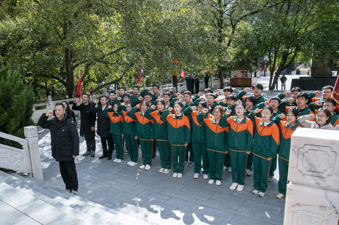 在腊子口战役纪念碑前,师生们集体向革命先烈默哀并敬献花篮,表达深切缅怀。校党委宣传部部长朱强带领全体师生重温入党誓词,进一步坚守初心使命。师生们跟随革命先辈的足迹,开展了一场别开生面的“重走长征路”步行研学活动,沿着蜿蜒曲折的山路,踩着崎岖不平的石阶,一步步坚定地向上攀登,心中涌动着对革命先烈的无限敬仰。置身于这片巍峨壮丽的崇山峻岭之中,师生们实地感受到了“一夫当关、万夫莫开”的战斗险境,仿佛穿越时空目睹了当年红军战士们英勇无畏、浴血奋战的壮丽场景。那一段段可歌可泣的英雄事迹,那一份份视死如归的革命精神,深深地触动了全体师生的心灵,使他们在思想上受到了极大的震撼与洗礼,更加坚定了传承红色基因、弘扬长征精神的决心。