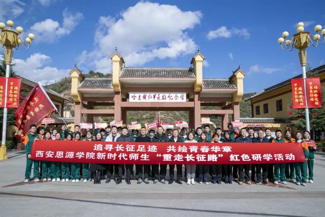 为深入贯彻习近平总书记关于“用好红色资源,传承好红色基因”的重要指示精神,纪念中央红军长征胜利到达陕北90周年,根据中共陕西省委教育工作委员会办公室《关于组织学生参与“追寻长征足迹 共绘青春华章”第二届新时代青年“重走长征路”活动的通知》精神,2025年10月24日至25日,西安思源学院开启“重走长征路”红色研学之旅,首期研学沿腊子口、哈达铺等地的长征路线,沉浸式追寻革命先辈足迹,将红色精神融入立德树人全过程,在实地研学中感悟长征精神的磅礴伟力。