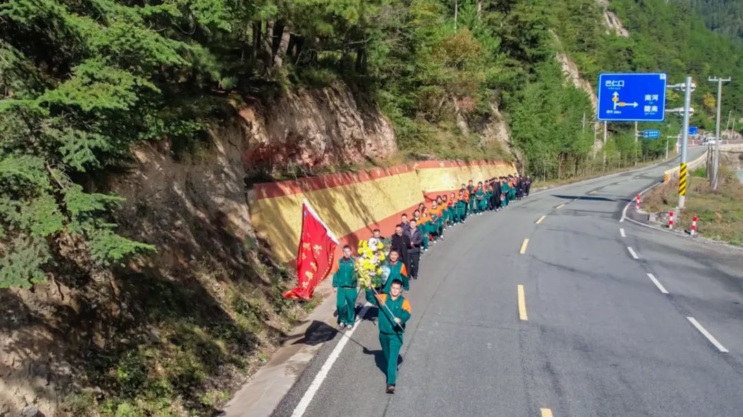 师生们跟随革命先辈的足迹,沿着蜿蜒曲折的山路开展“重走长征路”步行研学活动