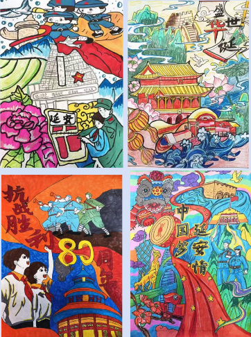 在感悟精神中践行“自强不息”,锤炼奋斗之志。思想引领需要具象载体与情感共鸣,为将研学中的感性体验与理性思考转化为深刻的价值认同,教育学院团总支策划举办“行走延安·研学路上的红色记忆”绘画作品展。学子们以宝塔山、延河水为背景,以延安精神内核为灵感,通过画笔勾勒革命圣地的壮丽图景,用艺术语言诠释艰苦奋斗、服务人民的初心使命。