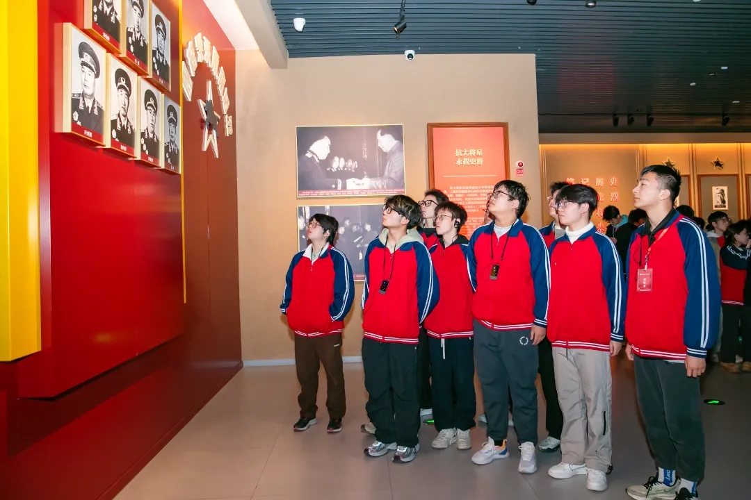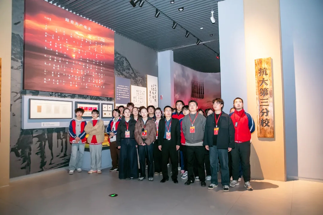 11月16日,师生怀着敬仰之情走进旧址,跟着讲解员一同学习“抗大小课堂”《抗大抗大,越抗越大》,现场氛围激昂而真挚,师生们无不被那珍贵的文物和历史照片展示出的抗大学员在艰苦条件下努力学习的精神所打动。不少同学在交谈中坦言,从前读到“抗大抗大,越抗越大”不太理解其内涵,此刻站在抗大当年的教室复原场景前、看着学员们用过的煤油灯与教材,才真正感受到这八个字背后的重量——它不仅是抗大办学规模从数百人到十余万骨干的增长,更是革命理想在烽火中薪火相传、抗大精神向全国战场延伸的生动写照。