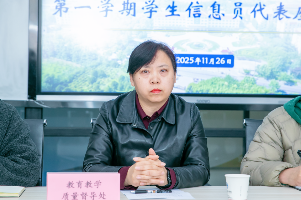 会议开始,教育教学质量督导处董晓妮副处长着重强调了学生信息员在助力教育教学质量提升中的关键作用,对全体学生信息员在教学信息搜集、反馈工作中付出的努力与取得的成效给予充分肯定。她表示,学校始终高度重视教学质量与学生学习生活体验,学生信息员是学校与学生之间的重要桥梁,学生提出的意见和建议对于学校改进教育教学工作具有重要意义。