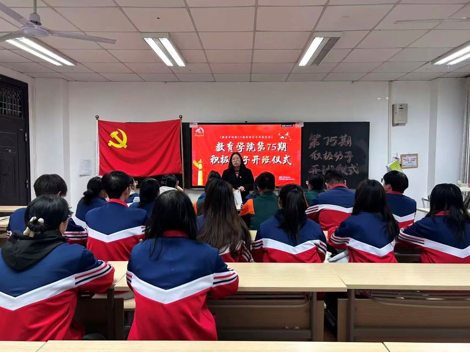 此次开班仪式的顺利举行,为教育学院第75期党课培训筑牢纪律根基,凝聚学员思想共识、激发向党组织靠拢的热情,标志着学院入党积极分子培养教育工作迈入规范化新阶段。接下来,学院将紧扣党的二十届四中全会精神,严抓培训全过程管理,严把质量与考核关,推动培训成果转化为学员坚定信仰、勇担使命的自觉行动,为党组织输送优质后备力量,为学院党建高质量发展注入青春动能。(供稿/教育学院)