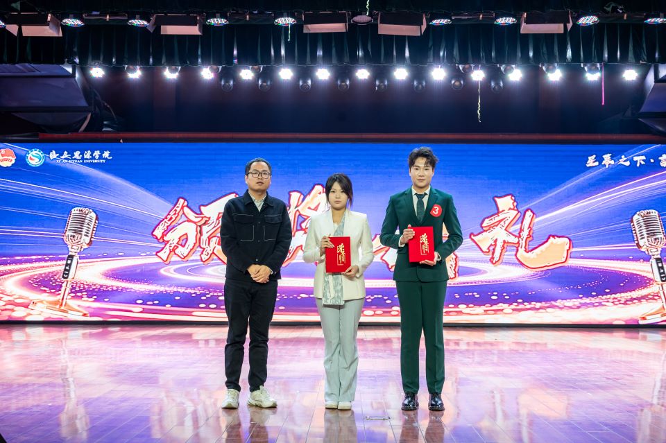 优秀奖:2号选手冯欣茹、7号选手王卓舒、10号选手张文娟(由播音与主持专业教师刘新宇、卓倩茹颁奖)