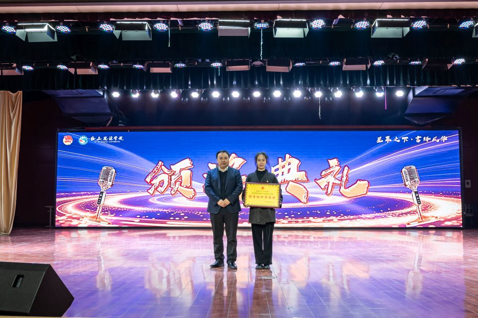 最佳人气奖:1号选手胡菲菲(由校园融媒体中心教师曹虎颁奖)