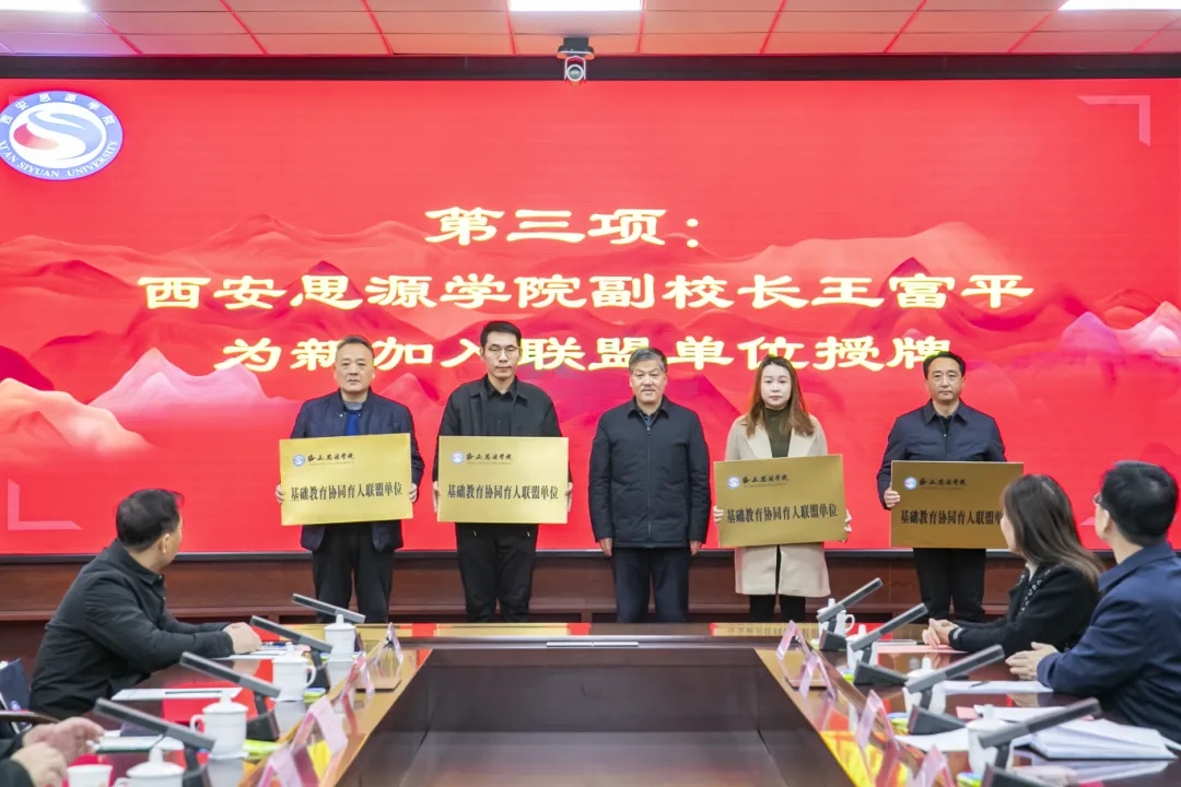 基础教育协同育人联盟主席、西安思源学院副校长王富平为新加入联盟单位授牌