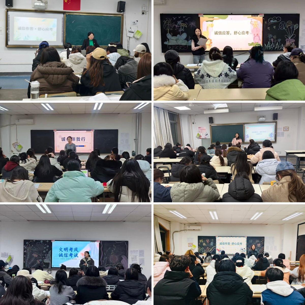 老师们围绕主题各有侧重、分层施教。她们从诚信应考的意义价值切入,强调考试既是知识的检验,更是品格的考量,针对备考焦虑情绪,分享目标拆解、情绪倾诉等调适技巧,引导学生正视压力、主动寻求帮助。她们还结合学科特点讲解科学复习方法,梳理考试规范与应考准备要点,鼓励学生们组建学习互助小组、开展复习经验交流,将科学备考与诚信应考相结合,以扎实积累和自律品格迎接期末考核。