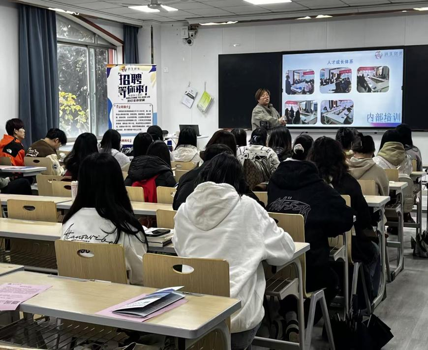 为将合作意向转化为育人实效,2025年10月20日,陕西润生财务集团应邀走进校园,为我校财务管理专业2026届毕业生举办专场实习就业宣讲会。企业财务部门代表及财务管理专业多名教师出席,现场吸引近百名毕业生参与。