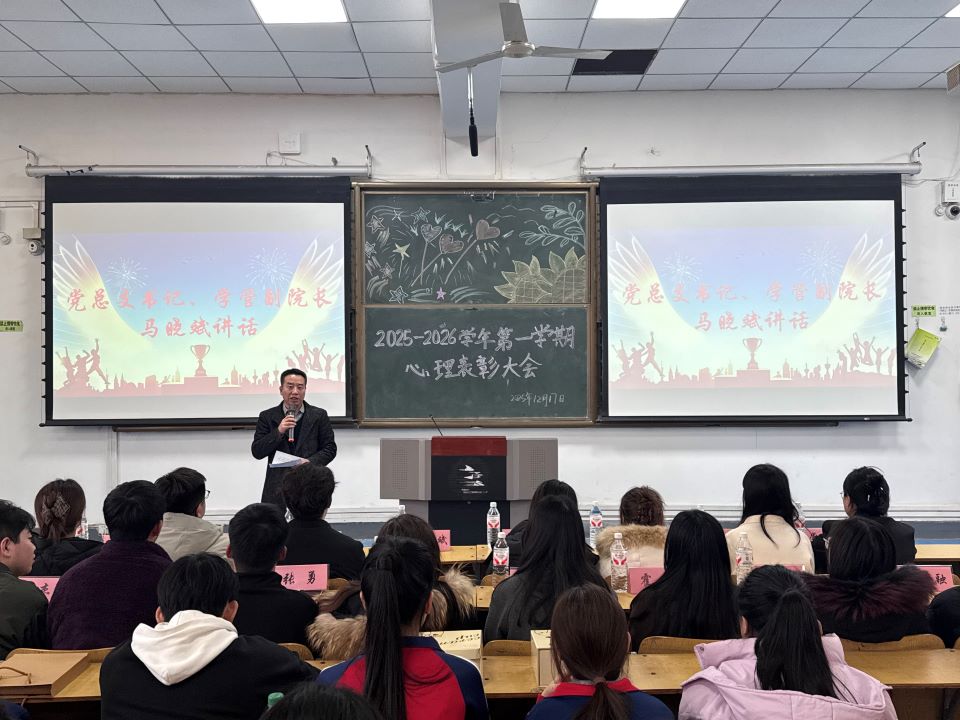 为表彰心理育人工作先进典型,凝聚全员育人工作合力,进一步夯实学院心理健康教育工作根基。2025年12月17日,医学院2025-2026学年第一学期心理工作表彰大会在西阶三教室举行。医学院党总支书记、学管副院长马晓斌,全体辅导员及受表彰学生齐聚现场,共话心理成长之路,共启育人崭新篇章。