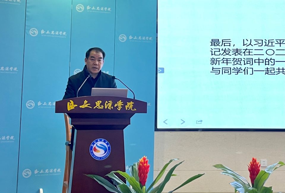 最后,张进生院长作总结讲话。他指出,本次思政课紧扣“引领方向、铸魂育人”根本目标,将宏大治理主题与医保民生实践深度融合,生动诠释了党的创新理论转化为惠民制度成果的实践路径。这堂课既是系统的知识传授课,更是引导全院学生深刻体悟制度优越性、精准把握党“一切为了人民健康”初心使命的思想引领课。结合工作实际,张进生院长对全体师生提出三点希望:一是强信念、担使命,筑牢为党育人、为国育才的思想根基;二是知践行、育新人,推动理论学习与实践育人同频共振;三是守政策、促发展,锚定行业发展方向赋能健康中国建设。他强调,学院将以此次活动为契机,持续深化思政教育与专业教育的有机融合,不断丰富育人内涵、创新育人载体,着力开创“三全育人”“五育并举”工作新局面,全力培养兼具精湛医术与深厚家国情怀的卓越医学人才,为助力健康中国建设、培育合格医学人才、增进人民健康福祉贡献思源智慧和力量。