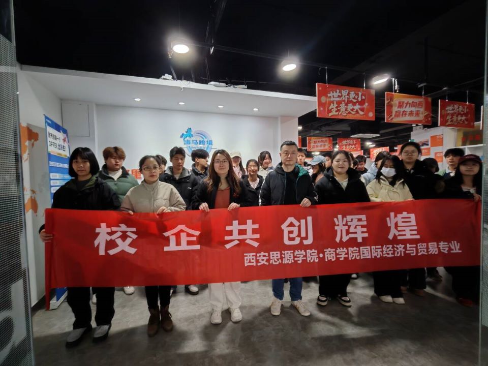 为帮助2025级国际经济与贸易专业大一新生筑牢专业认知根基,搭建课堂理论与行业实践的沟通桥梁,深化对数字贸易领域的直观了解,2025年12月26日,西安思源学院商学院2025级国际经济与贸易专业全体学生在专业负责人杨蕾、骨干教师陈刚及校企合作单位陕西普特教育咨询有限公司企业人士的共同带领下赴阿里巴巴(西安)跨境电商服务渠道商——陕西小嗨马数字科技有限公司,开展专业认知实习活动。
