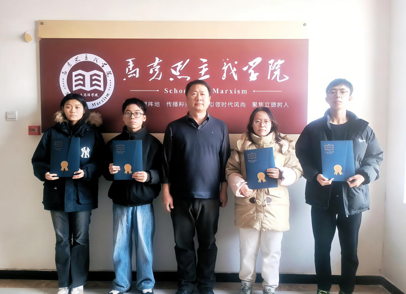 获奖学生代表与马克思主义学院任课教师阎立强老师合影留念