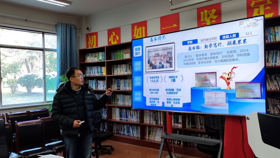 为深入贯彻立德树人根本任务,以党建引领推动大思政教育与班级建设深度融合,2026年1月7日,城市建设在东楼308会议室开展2024—2025学年先进班集体答辩会。学院党委副书记、学管副院长张刚及全体辅导员出席本次活动。
