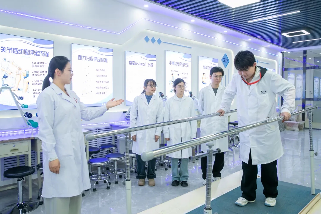 西安思源学院医学院教师在康复评定实训室指导学生掌握康复训练技能