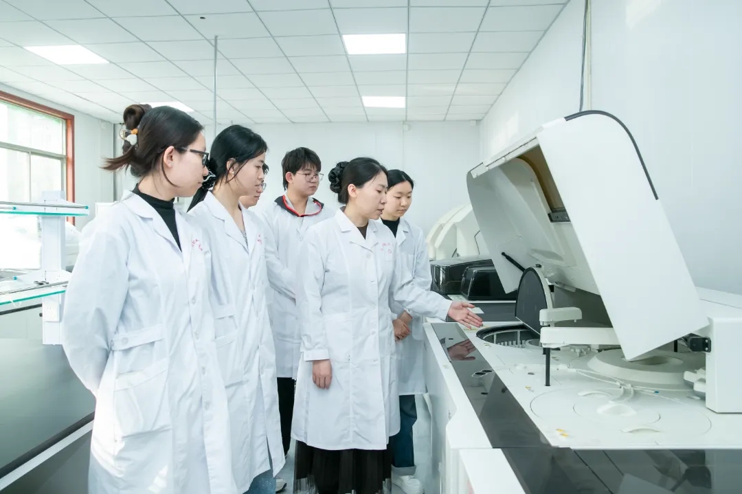 西安思源学院医学院教师在生化免疫实训室对学生进行全自动生化分析仪的操作讲解