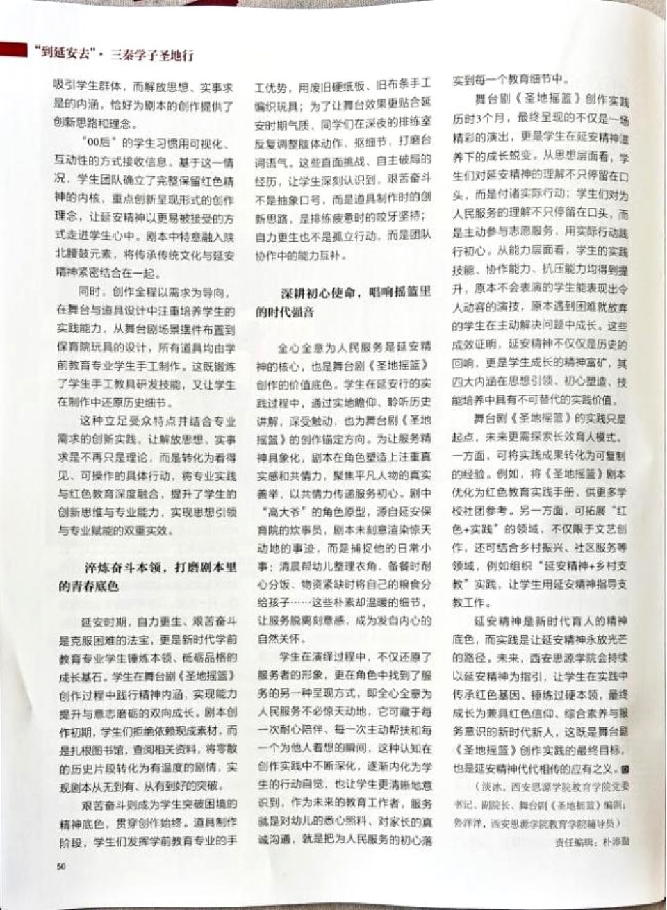 本次文章从筹备到刊发,得到了学校党政领导的悉心指导,以及学工部、校团委等职能部门的大力支持。这不仅是我校“到延安去”·三秦学子圣地行思政教育品牌建设成效的集中体现,更是西安思源学院学生教育管理工作的一次成功展示。