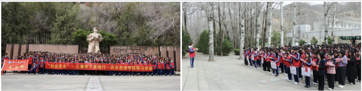 为深入贯彻落实《新时代陕西省立德树人工作指南》工作部署,根据中共陕西省委教育工委《关于组织开展“到延安去”三秦学子圣地行活动的通知》要求,西安思源学院在党政领导统筹部署下,2026年3月28至29日,学校第九期研习营354名文学院师生赴革命圣地延安开展了一场“行走的思政课”。本次活动深度融入“饮水思源,自强不息”校训精神与文学院“融会贯通,经世致用”的育人理念。通过实地探访、沉浸学习、专题党课、互动体验,引导青年学子在革命旧址中追溯初心,在精神洗礼中坚定理想信念,推动思政教育走深走实、见行见效。