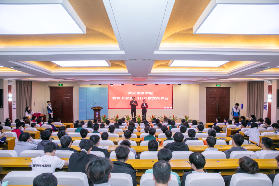 为发挥校友的示范引领作用,帮助在校生明晰职业方向、夯实成长基础、提升未来发展竞争力,2026年4月15日,西安思源学院校友办与工学院联合举办“校友大讲堂:一位2008届学长的职业之路与感悟”报告会。报告由我校优秀校友田日红主讲,他以自身十余年职业发展历程的所思所感,为同学们带来一场兼具实战性与启发性的成长盛宴。校友办主任陈海琴、副主任刘景常,工学院副院长郝海峰、辅导员曹宇,工学院各年级学生代表、星火社成员代表等180余人参加报告会。
