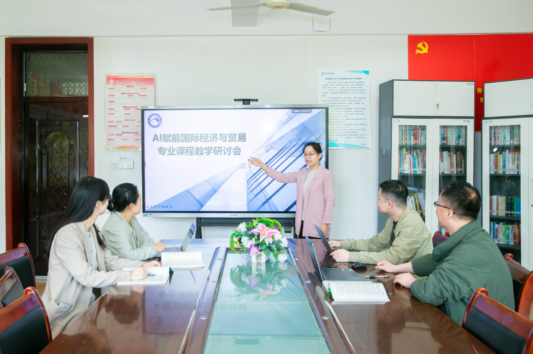商学院教师杨蕾教授(左三)带领教学团队成员进行教学研讨