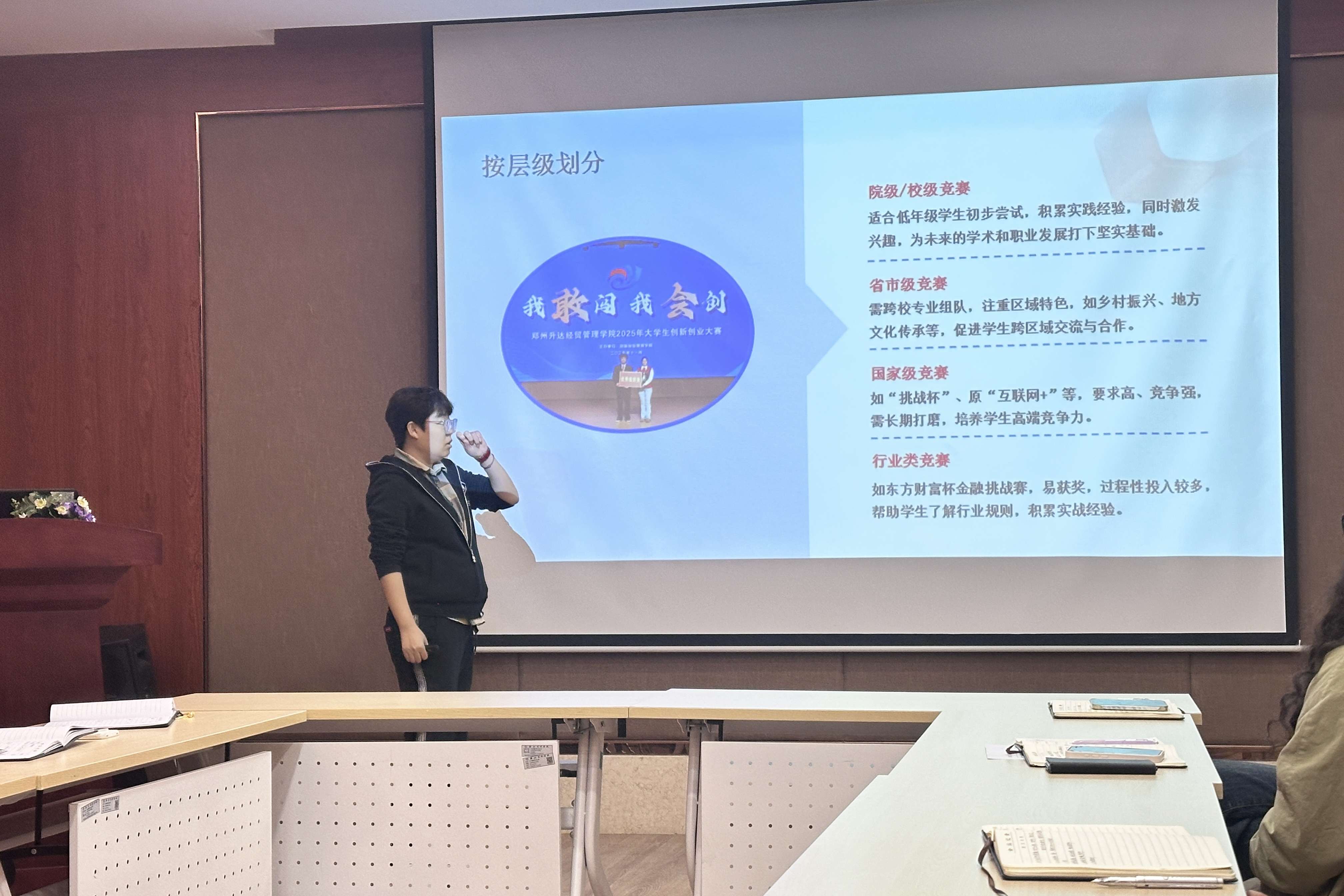 本次分享会上,王晓妍老师立足辅导员育人实践,围绕为何指导学生竞赛、学生竞赛分类与特点、高效竞赛指导方法三大核心板块,结合自身多年一线指导经验与真实育人案例,系统拆解竞赛指导逻辑、分享备赛技巧与育人心得,内容直击工作痛点、贴合实际需求,让在场辅导员收获颇丰、深受启发。