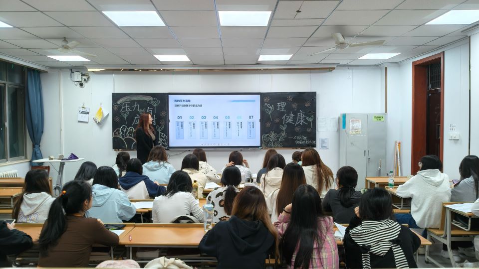 活动中,闫丹平老师以轻松互动的方式开场,引导同学们分享近期在学习、生活中遇到的压力事件。随后,她结合具体案例,讲解了压力产生的原因及对身心的影响,并重点介绍了情绪调节、时间管理、社会支持等构建心理防护网的有效策略。同学们认真聆听,积极参与讨论,现场气氛活跃。一位同学表示:“原来压力并不可怕,关键是要学会如何应对。”