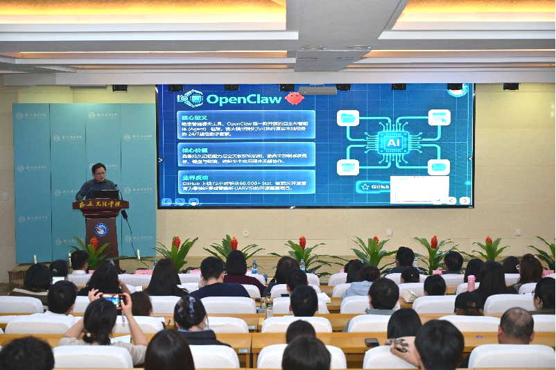 为深入推进教育数字化转型,推动人工智能与教学科研深度融合,提升教师数字素养与创新能力,2026年3月11日下午14:00,电子信息工程学院组织全院教师及学生代表在我校教学报告厅,开展OpenClaw智能体框架应用专题培训,共同探索AI赋能高等教育的新路径、新方法。专题培训由电子信息工程学院科研副院长王征风主持。