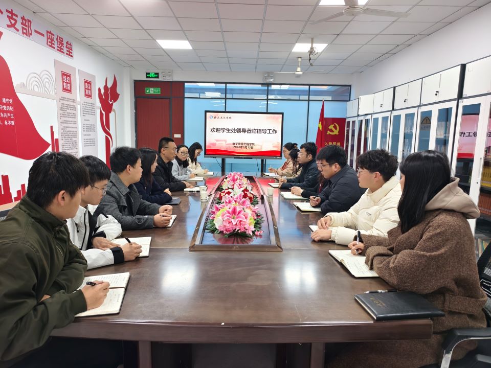 为进一步夯实学院学生管理工作根基,优化心理健康教育服务体系,推动学生工作提质增效、走深走实,2026年3月13日,学生处处长苏晓峰、心理健康教育与咨询中心主任许一芳一行莅临电子信息工程学院,专项调研指导学生管理与心理育人相关工作。学院党委副书记、学管副院长刘帆及全体辅导员参加座谈交流,全程认真聆听指导、积极沟通交流,切实把上级指导要求转化为后续工作的务实举措。