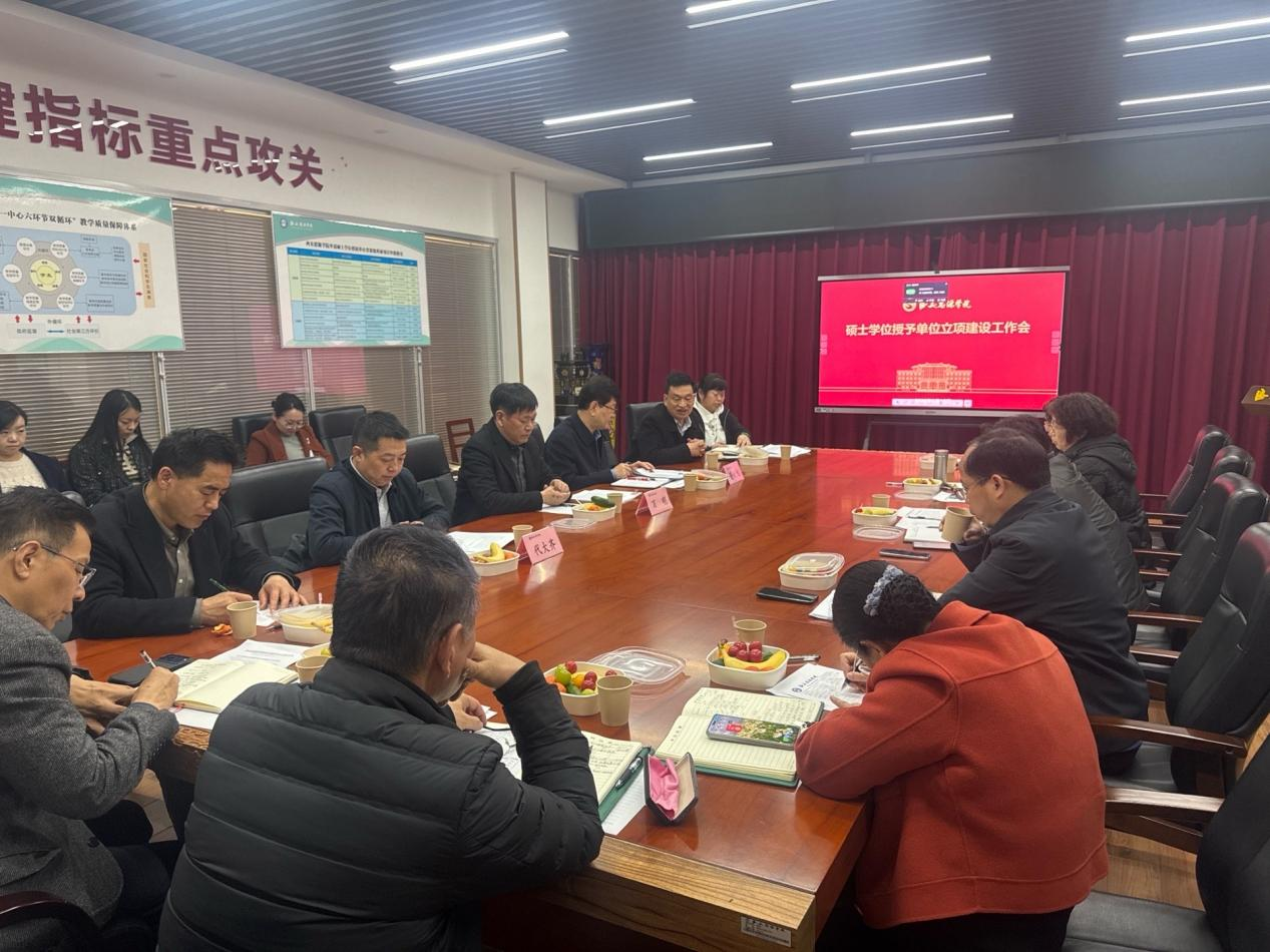 会上,学科建设办公室围绕学校申硕建设总体进展,组织与会人员学习《博士硕士学位授予资格审核办法(2025年)》文件精神,分析学校申硕优势与竞争挑战。会议还结合《硕士学位授予单位立项建设工作通知》,围绕申硕材料准备、数据采集、任务分解等内容进行了阐释说明。根据安排,本次工作将重点完成《申请新增硕士学位授予单位简况表》《申请新增硕士专业学位授权点简况表》等申报材料的撰写与填报,并对2021—2025年相关数据进行系统统计与规范整理,为后续专家评议和申报工作奠定基础。