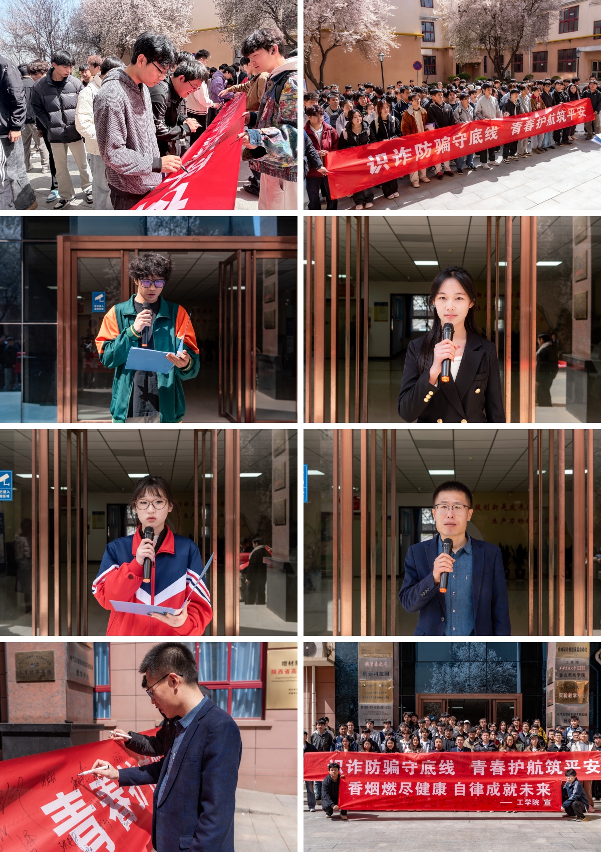 活动最后,随着印有活动主题的两条横幅在现场展开,参会师生纷纷上前,郑重签下自己的姓名,表达拒绝烟草、远离诈骗、共建平安校园的坚定决心。签字仪式后,全体参与人员合影留念,为本次主题教育活动画上了圆满句号。