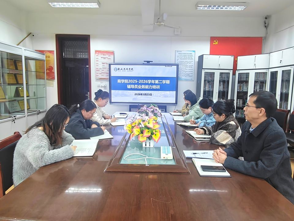 为进一步提升辅导员业务能力与专业素养,精准把握大学生思想心理特点,筑牢学生心理健康与思想教育防线,商学院于2026年3月23日组织开展辅导员业务能力专题培训。