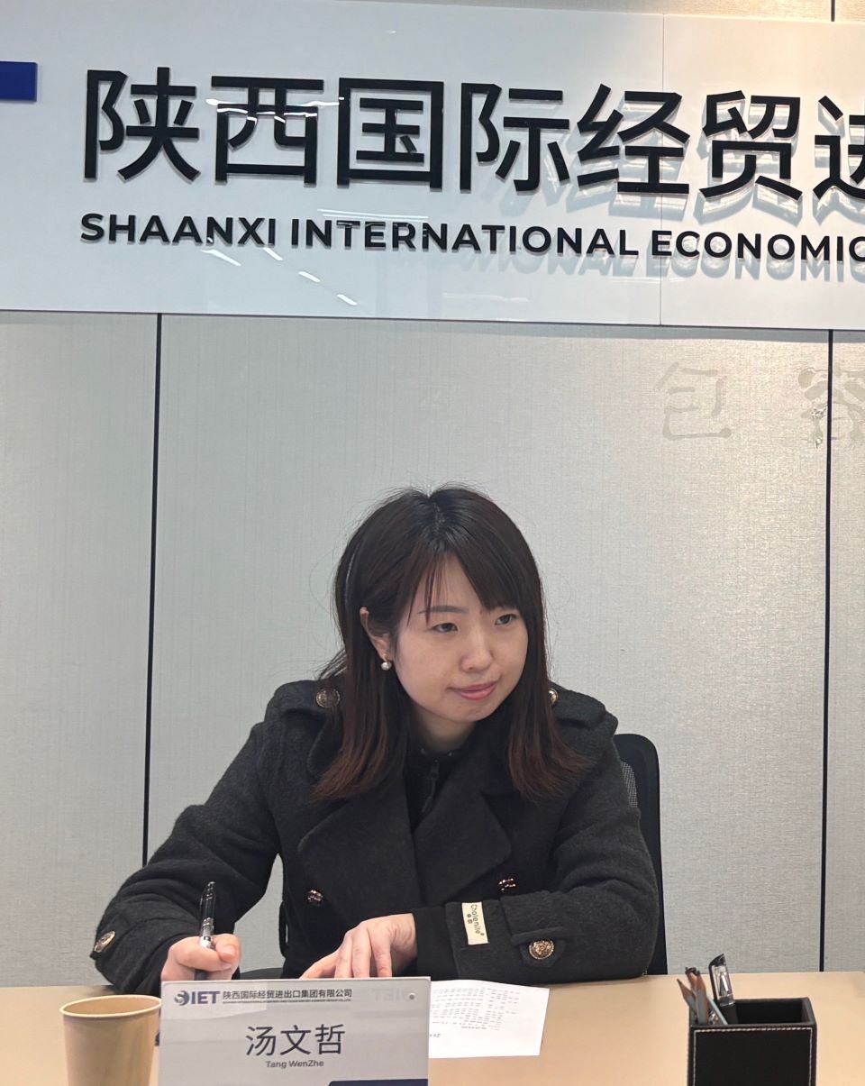 座谈会伊始,校企双方依次介绍了参会人员,互相认识后,座谈交流正式拉开帷幕。苗谦董事长对西安思源学院一行的到访表示热烈欢迎,并详细介绍了陕西国际经贸进出口集团有限公司的发展历程、业务布局、行业优势及现阶段的人才需求方向。他表示,集团深耕进出口贸易领域,对大数据管理、数据分析等专业人才需求迫切,期待与西安思源学院搭建深度合作桥梁,实现人才培养与企业需求的精准对接,为企业发展注入新鲜血液。