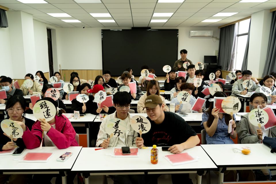 辅导员史凤伟老师开展助考线下分享会,为同学们送上专属的纪念礼物——漆扇、实用笔袋等。最让人动容的是,每一把漆扇上都书写着祝福寄语,一笔一画皆是期许,一字一句都是祝愿,将“旗开得胜”“金榜题名”“提笔从容自信,合笔如愿以偿”的美好期盼送到每位同学手中,让同学们在考前感受到来自母校与老师最温暖的力量。